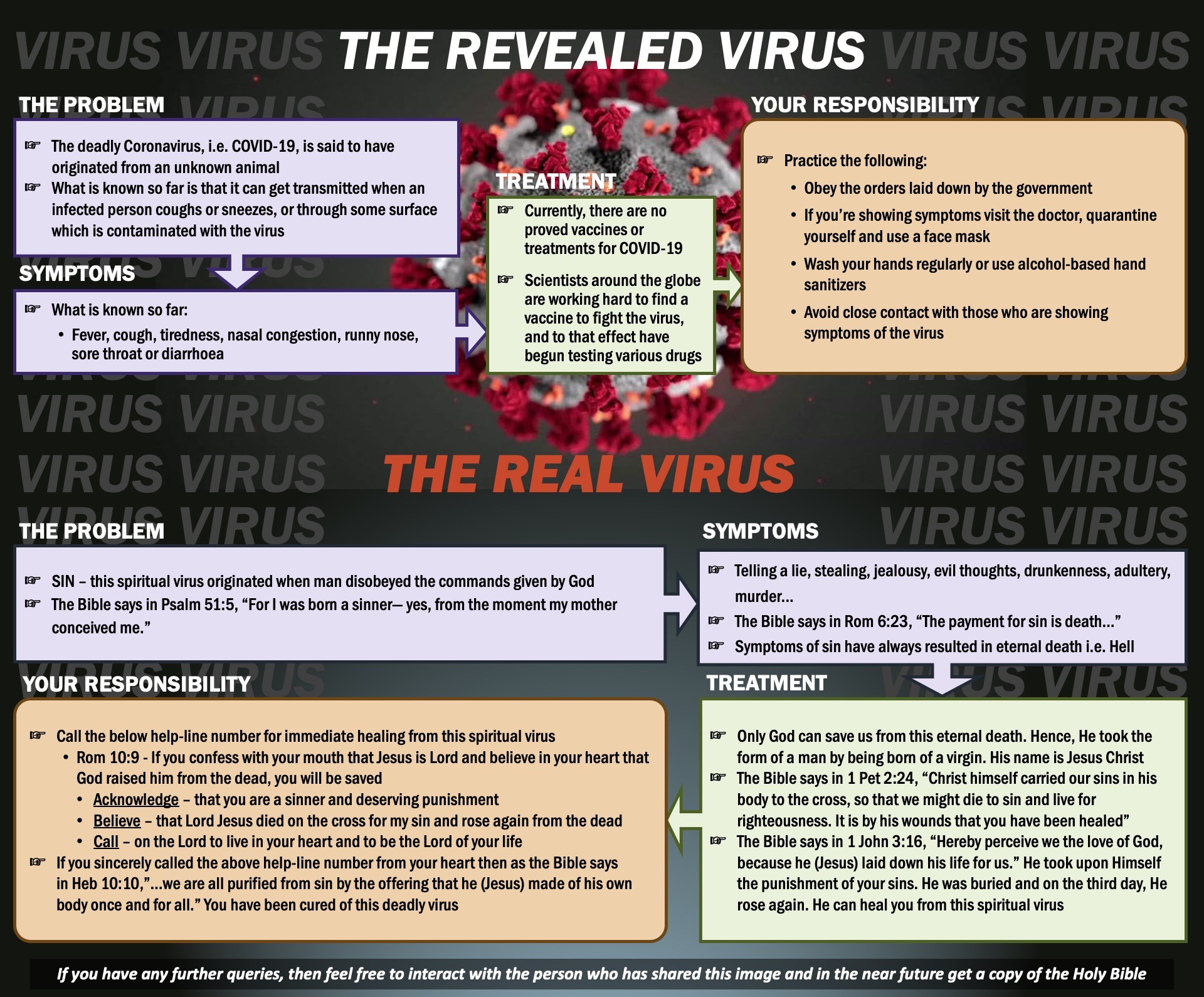- SIN – this spiritual virus originated when man disobeyed the commands given by God